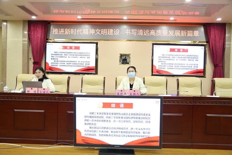 为全面推进党的二十大精神学习宣传贯彻工作,引导广大党员干部把思想和行动统一到党的二十大精神上来。近日,清城区检察院邀请党的二十大精神区委宣讲团成员、清城区委党校教师解晴为全院干警开展题为《推进新时代精神文明建设 书写清远高质量发展新篇章》的宣讲,院领导班子、全体干警到会参加。
