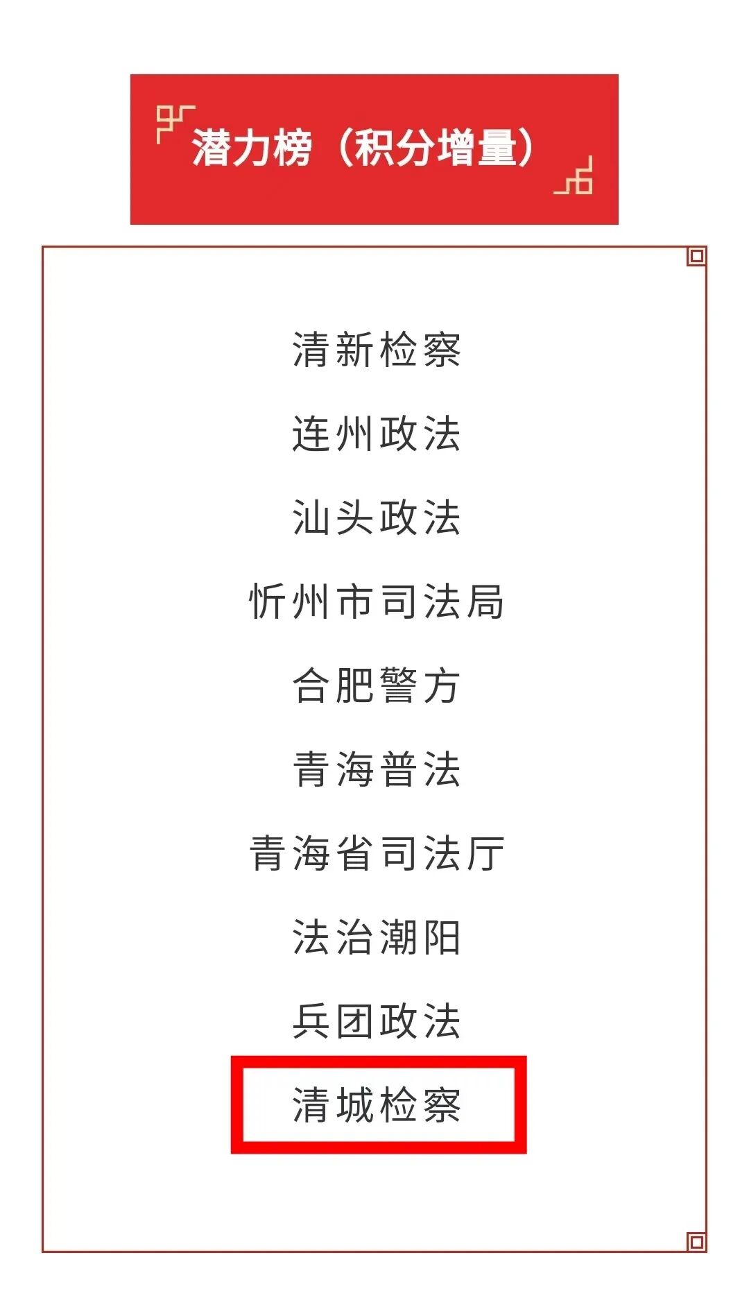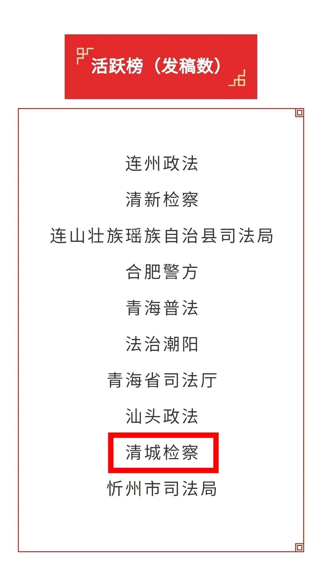 喜讯:清城检察荣登“法治号”1月榜单潜力榜和活跃榜