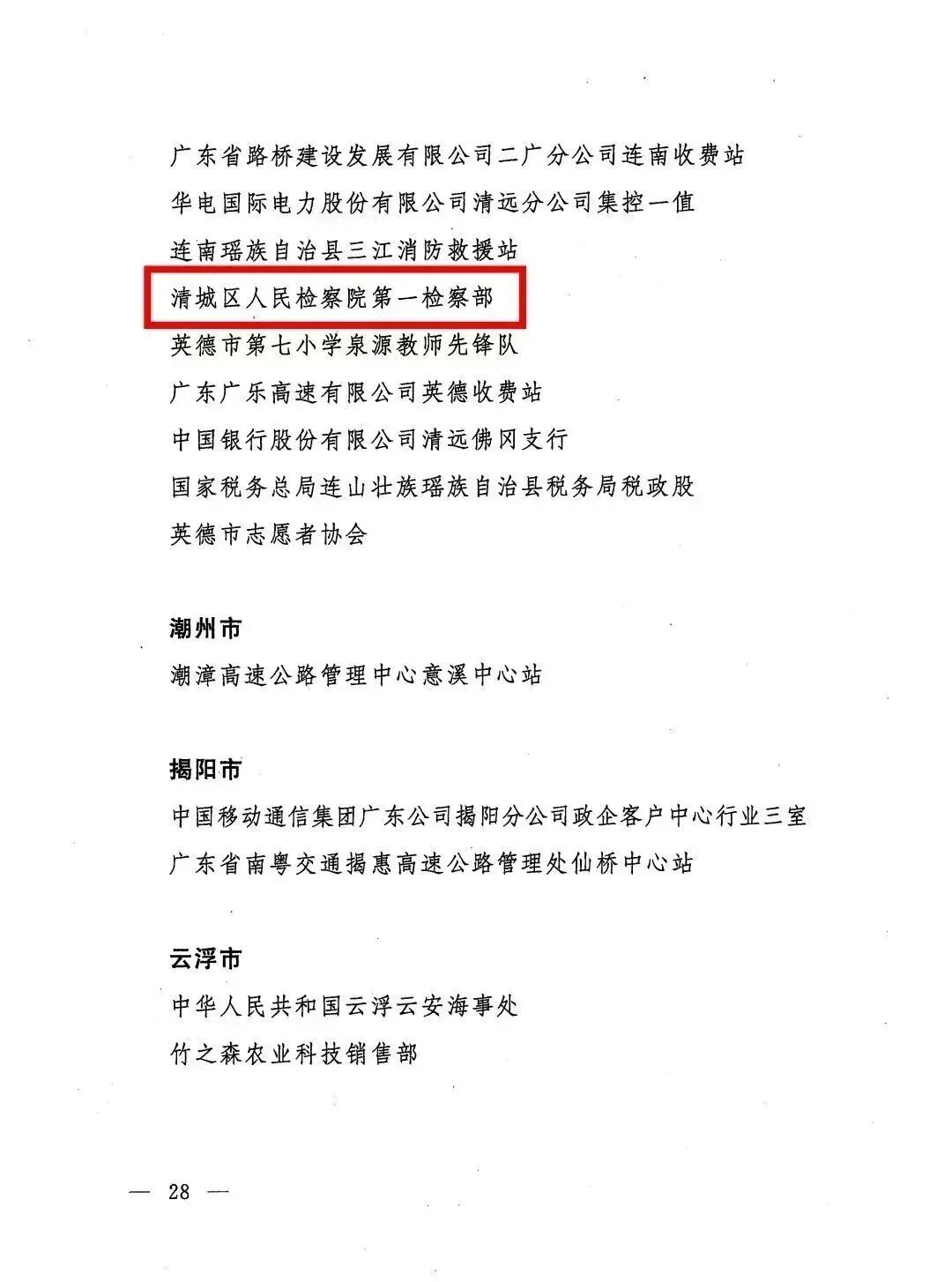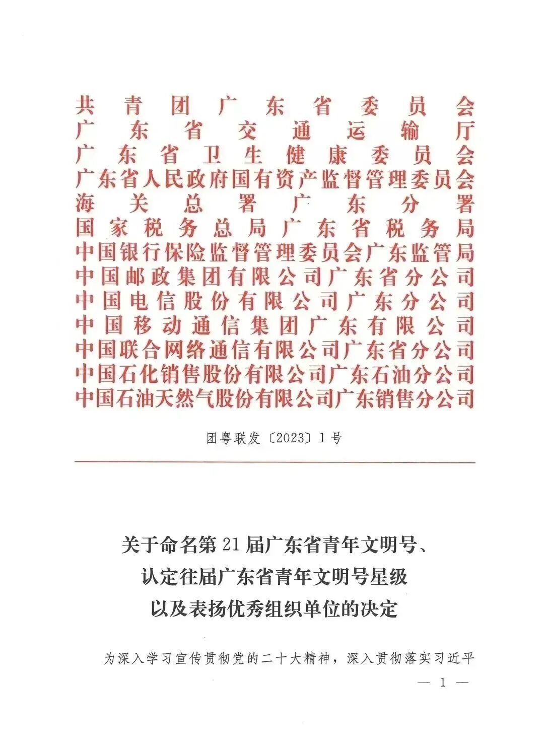 近日,广东省创建青年文明号活动组委会印发《关于命名第21届广东省青年文明号、认定往届广东省青年文明号星级以及表扬优秀组织单位的决定》(团粤联发〔2023〕1号),清城区检察院第一检察部荣获“第21届广东省青年文明号”称号,同时被认定为“一星级广东省青年文明号”。