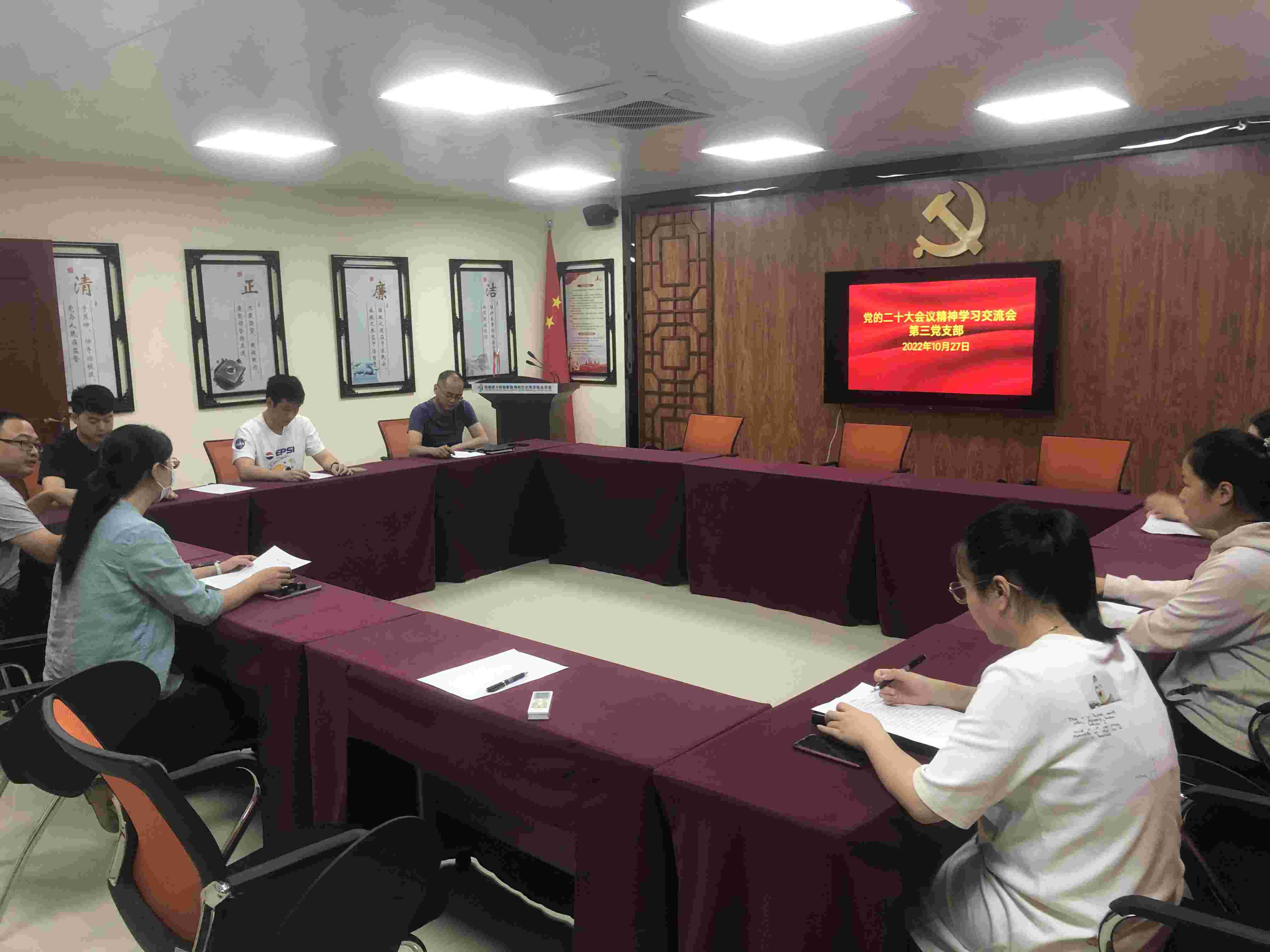 党的二十大报告全面总结新时代十年的伟大变革,充分彰显了百年大党为人民幸福踔厉奋发、为民族复兴勇毅前行的不变初心和永恒使命。检察工作融入其中要怎么做?第一党支部提出,要深刻把握党的二十大主题,领悟“三个务必”“五个牢牢把握”新要求,以“六个必须坚持”为指引,联系检察工作实际,种好自己的责任田,努力克服本领恐慌,尽力而为,量力而行,真正成为业务精、作风好的新时代检察干警。第二党支部认为,加强法律监督是二十大报告提出的严格公正司法的重要内容,刑事检察工作应立足办案职能,不断夯实业务素能,以实干求实绩,以实干求发展,真正做到立检为公,司法为民,以实际行动贯彻落实党对新时代政法工作的决策部署。第三党支部指出,党的二十大报告的内容,为检察机关进一步加强法律监督工作提供了行动指南,更是下一步检察工作的根本遵循,要认真学习党的二十大精神,凝聚磅礴力量,以实干实绩实效交出贯彻落实党的二十大精神的优异答卷。
